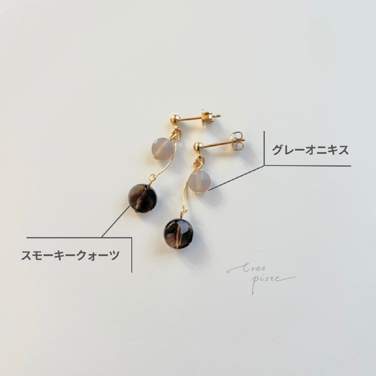 そっと光を透かすふたつの天然石、スモーキークォーツ × グレーオニキス