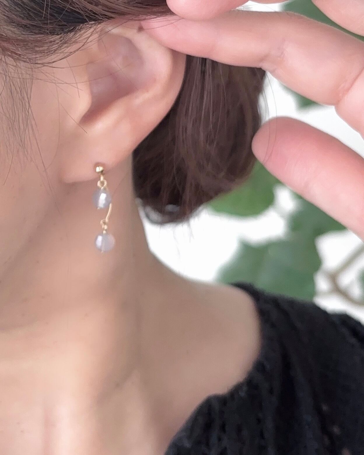 グレーオニキスのやわらかな透明感は肌にスッとなじみ、さりげない光を与えてくれます